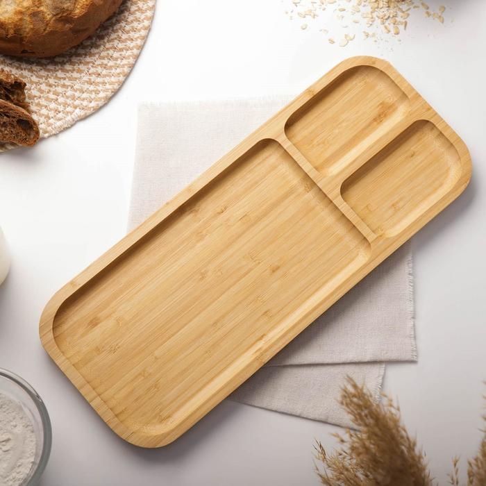 Менажница Доляна Striata, 3 секции, 39,5×16 см, бамбук