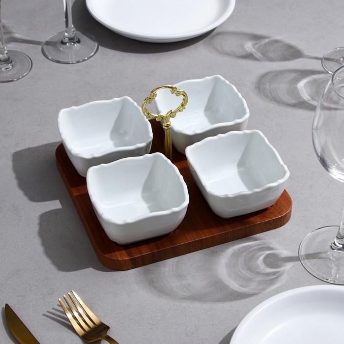 Менажница «Капель», 4 шт: 200 мл, деревянное основание, фарфор, Иран