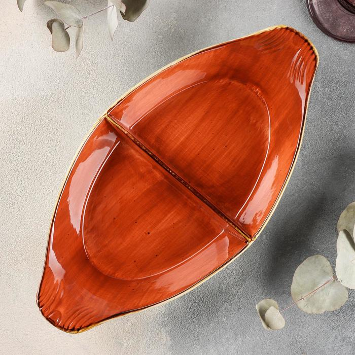 Менажница керамическая 2 ячейки «Сапфир», 29,5×16×6 см, цвет оранжевый