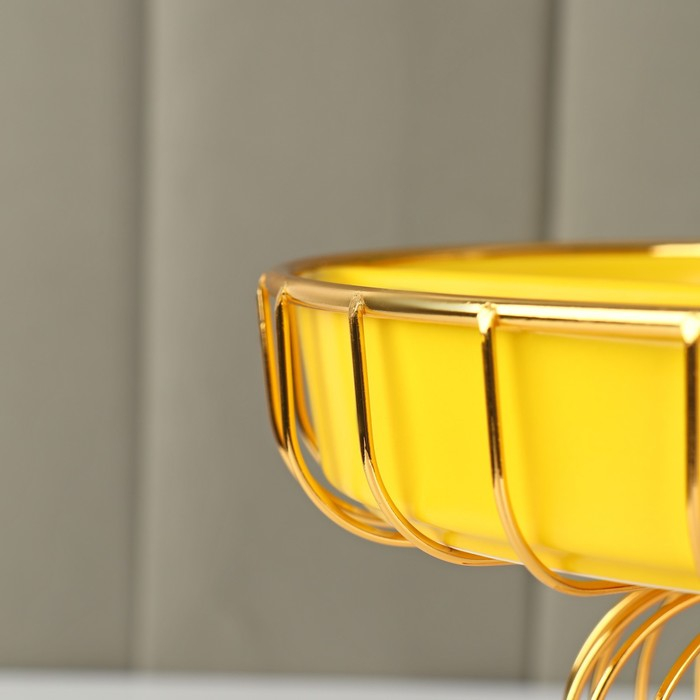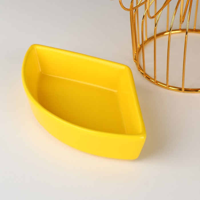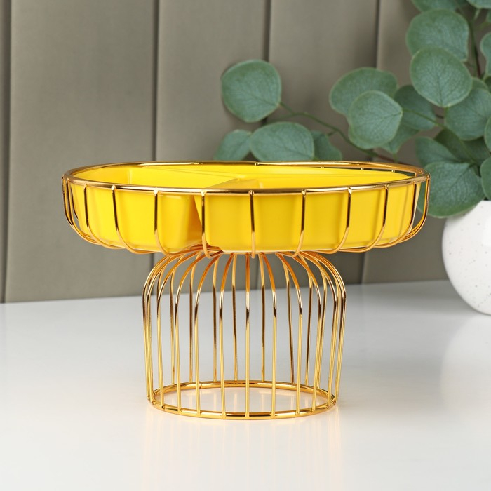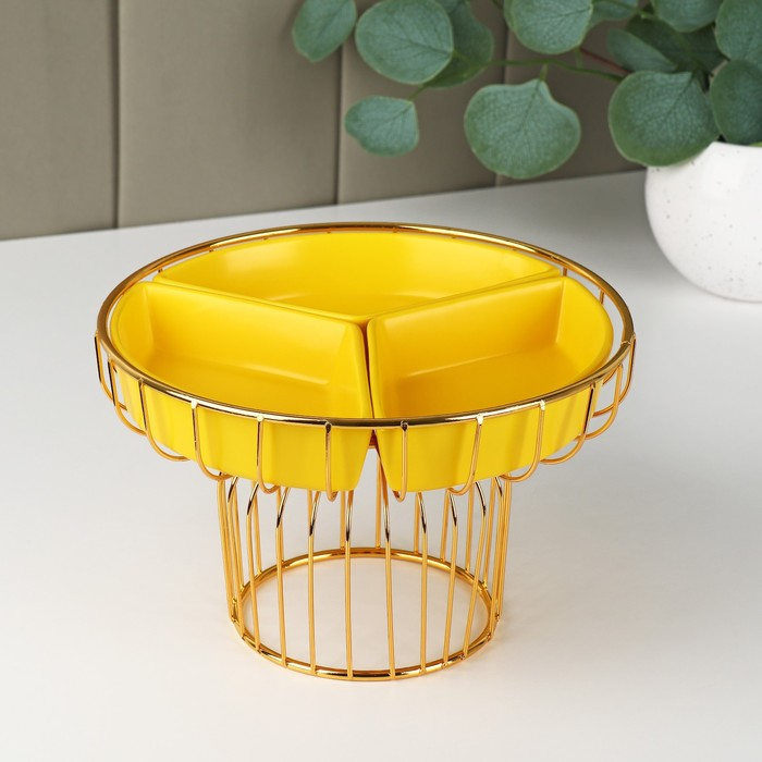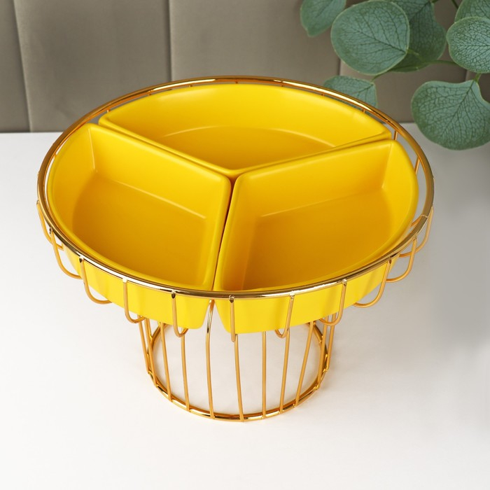 Менажница керамическая 3 ячейки на металлической подставке «Богема», 22×14 см, цвет жёлтый