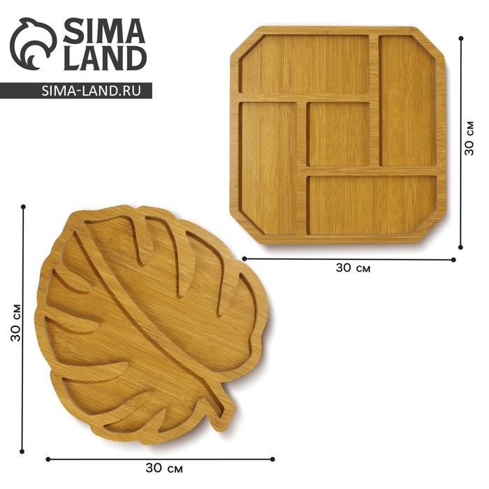 Менажница, набор 2 шт., дерево «Посуда Уют », монстера 30х30 см., менажница 30х30 см.