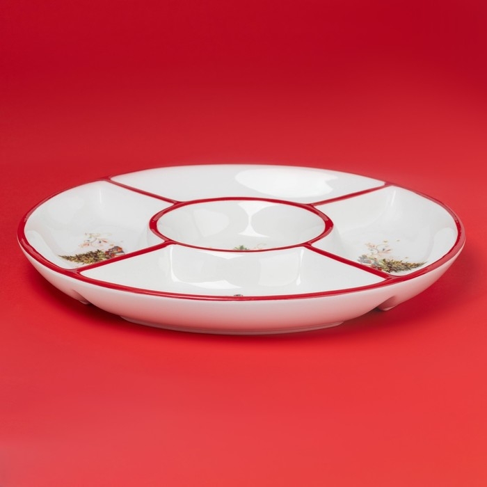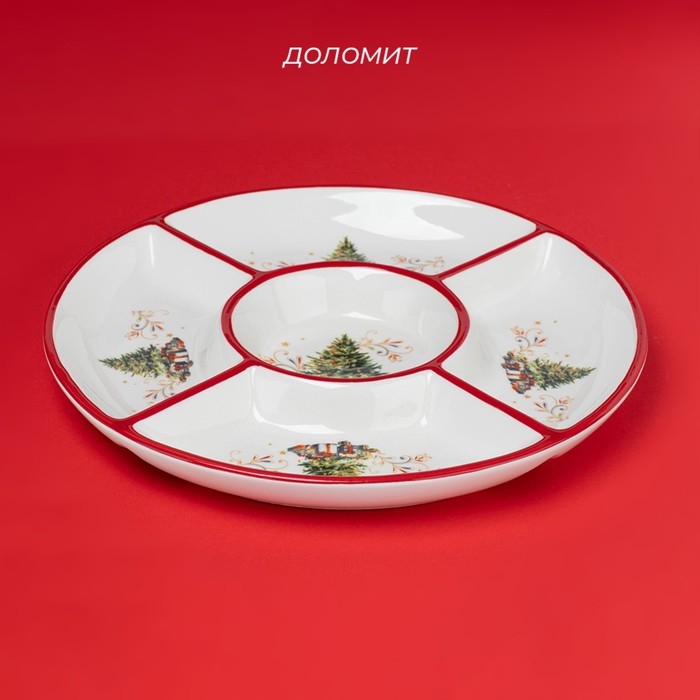 Менажница новогодняя Доляна «Волшебное дерево», 5 ячеек, 25,5×3,1 см, керамика, цвет белый
