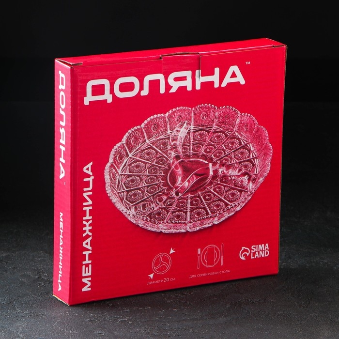 Менажница стеклянная круглая «Северная звезда», 3 секции, d=20 см
