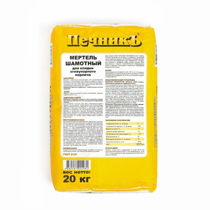 Внимание! Мертель шамотный – экологически чистый материал.