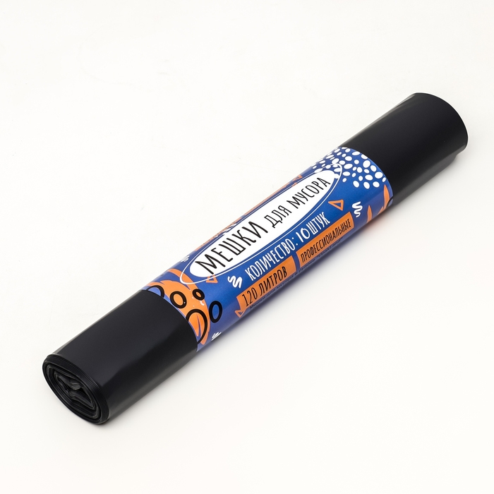 Мешки для мусора «КРЕПАНОМЪ», 120 л, ПНД, 12 мкм, 66×103 см, 10 шт, цвет чёрный