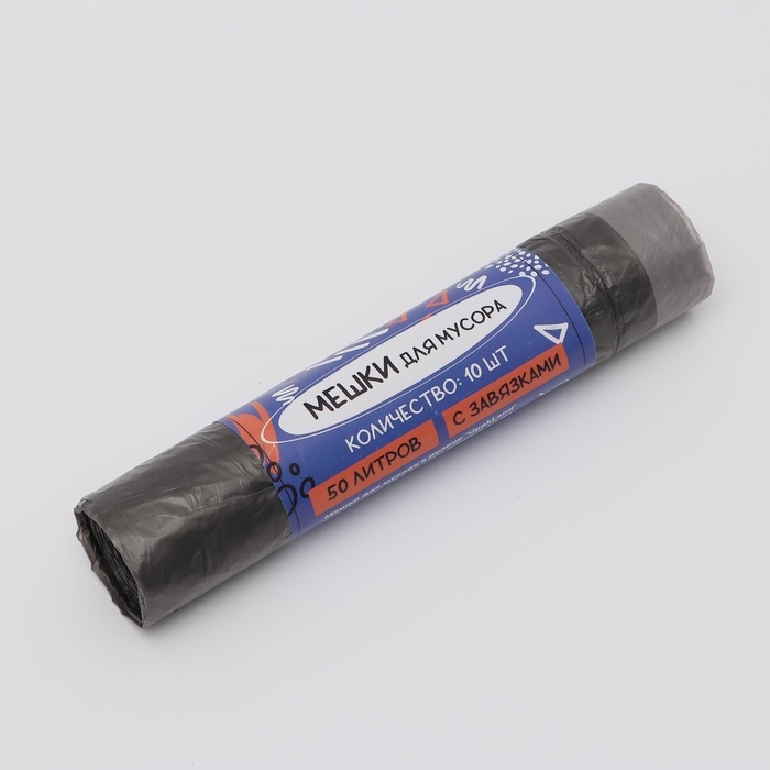 Мешки для мусора в рулоне "UpakLand" с завязками 50 л 16 мкм черные 10 шт