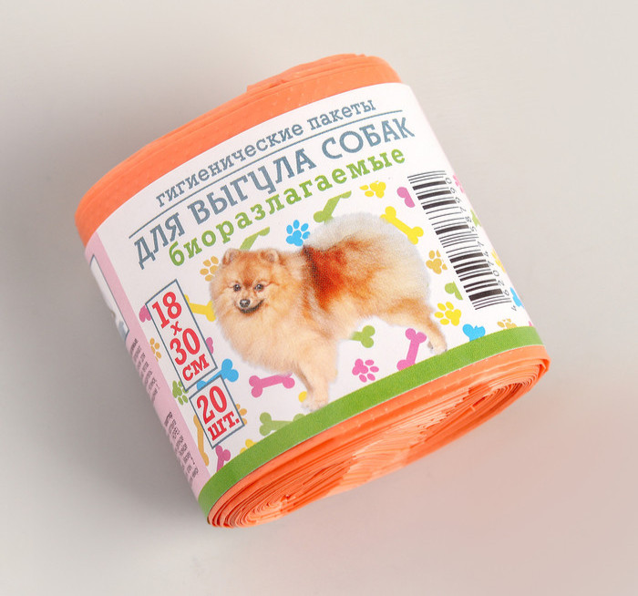 Мешки гигиенические для выгула собак, биоразлагаемые, 18x30 см, 20 шт, ПНД, цвет оранжевый