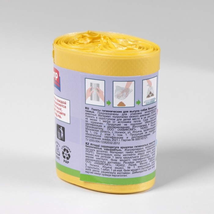 Мешки гигиенические для выгула собак, биоразлагаемые, 24×40 см, ПНД, 20 шт, цвет жёлтый