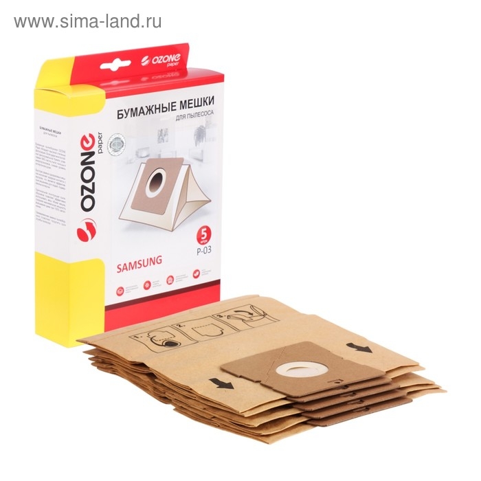 Мешки-пылесборники P-03 Ozone бумажные для пылесоса, 5 шт
