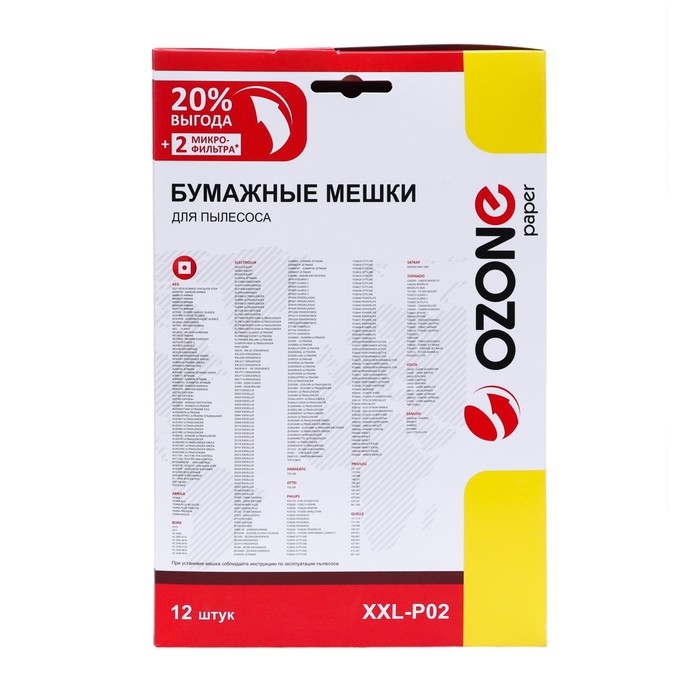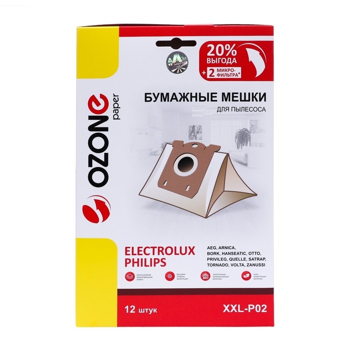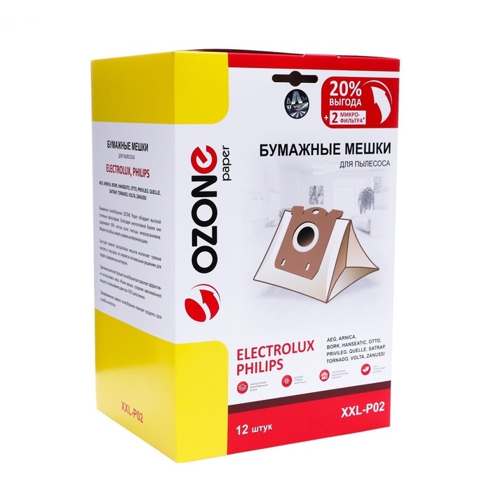 Мешки-пылесборники XXL-P02 Ozone бумажные для пылесоса, 12 шт + 2 микрофильтра - это отличный выбор для тех, кто ценит качество и комфорт. Они обеспечат вам долгую и надежную службу, сохраняя ваш дом в безупречной чистоте.