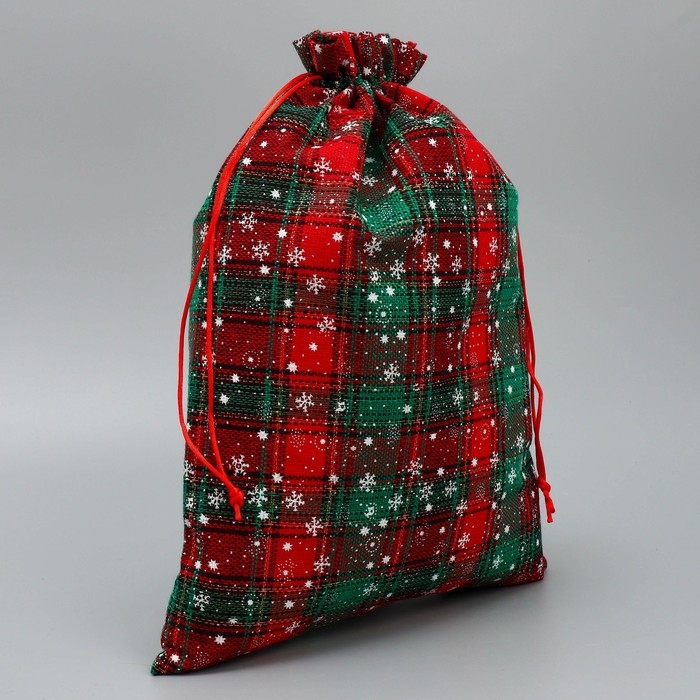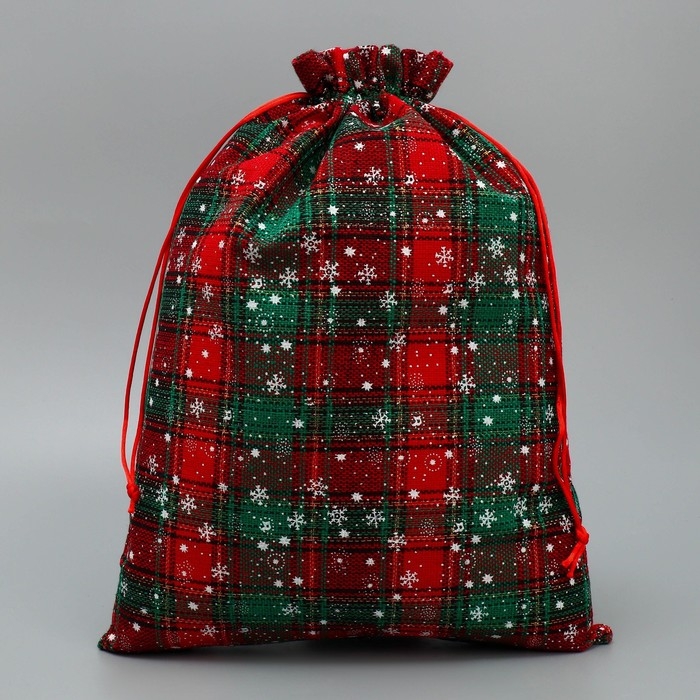 Мешок для подарков «Дед Мороз и снежинки», на завязках, 29 × 22 см