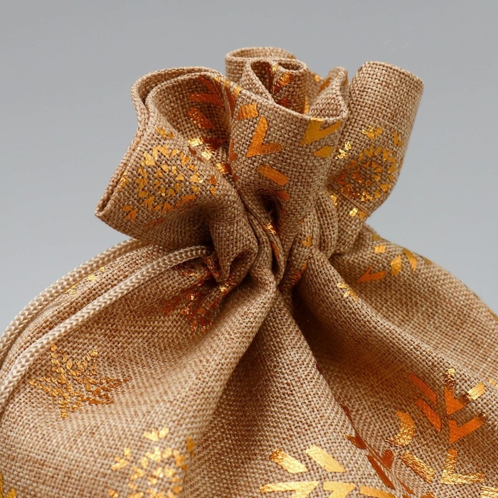 Мешочек подарочный холща «Новогодние снежинки», тиснение, 16 х 24 см +/- 1.5 см, Новый год