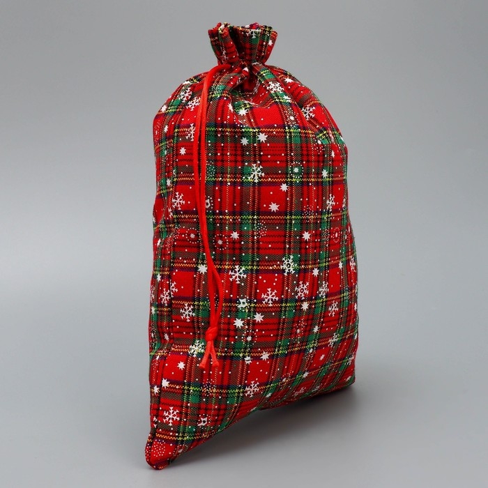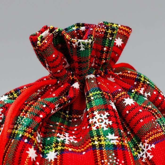 Мешочек подарочный холща «Новогодняя клетка», снежинки, 20 х 30 см +/- 1.5 см, Новый год