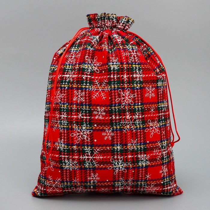 Мешок для подарков «Дед Мороз и снежинки», на завязках, 29 × 22 см