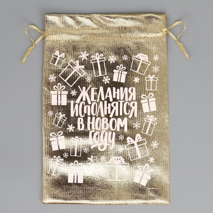 Мешочек подарочный парча «Желания исполняются», 16 х 24 см +/- 1.5 см, Новый год