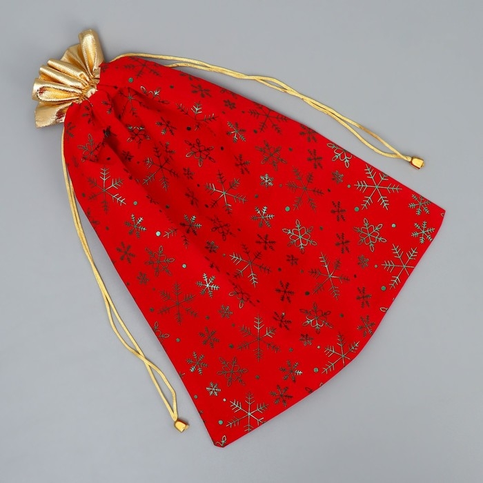 Мешок для подарков «Дед Мороз и снежинки», на завязках, 29 × 22 см