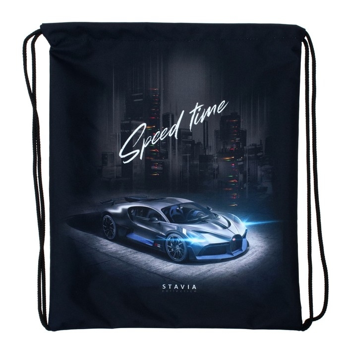 Мешок для обуви 430 х 340 мм, Stavia (плотность 600D с водоотталкивающей ПУ-пропиткой) "Машина", чёрный/голубой