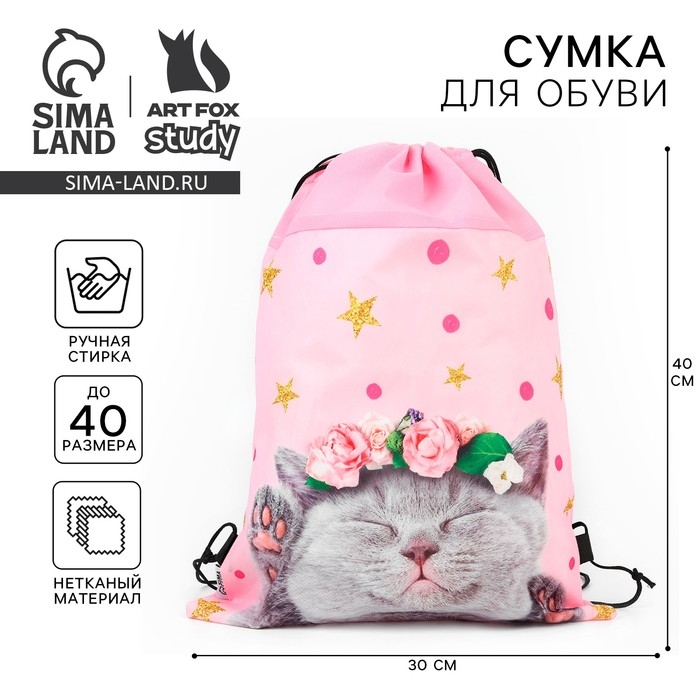 Мешок для обуви «Очаровательный котёнок» нетканное полотно, размер 30 х 40 см