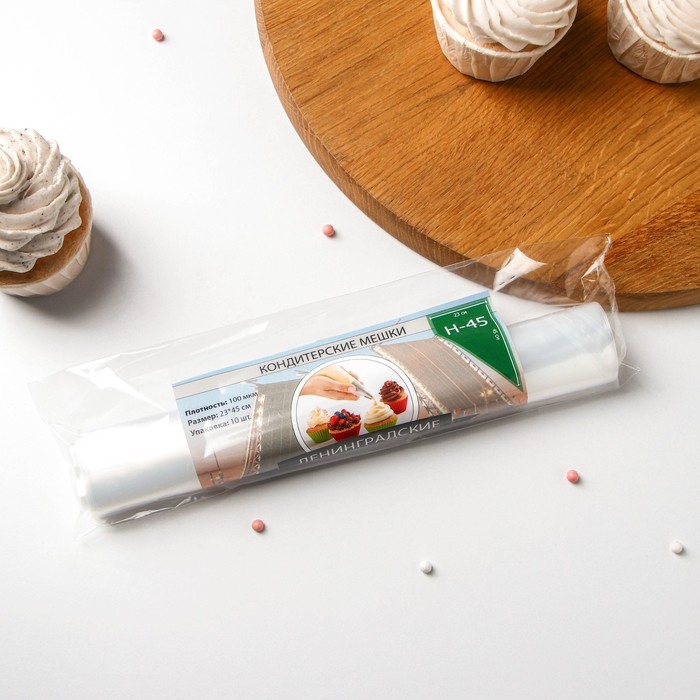 Мешок кондитерский, h=45 см, рулон 10 шт, 45×23 см, цвет прозрачный