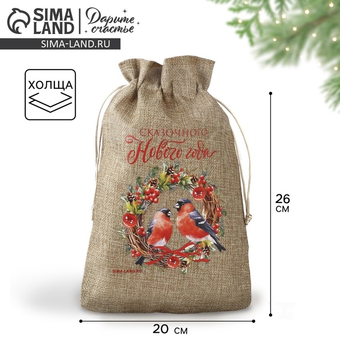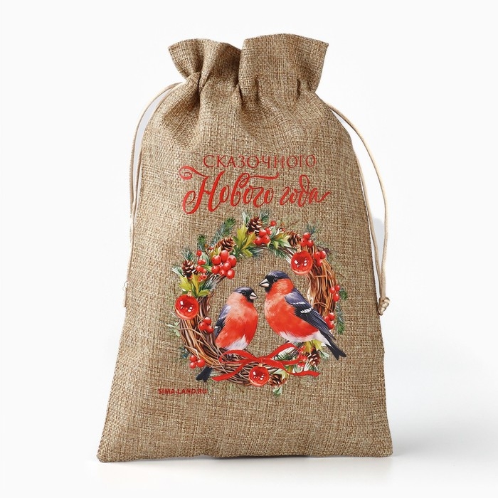 Мешок подарочный с термонаклейкой «Новогодний венок», 20 х 30 см , Новый год