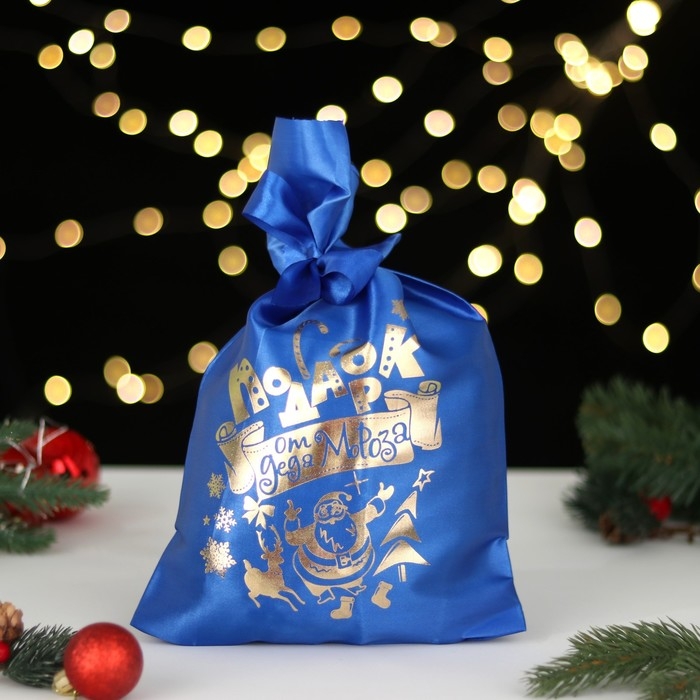 Мешок "Подарок от Деда Мороза", атлас, с завязками, синий, 20х30 см