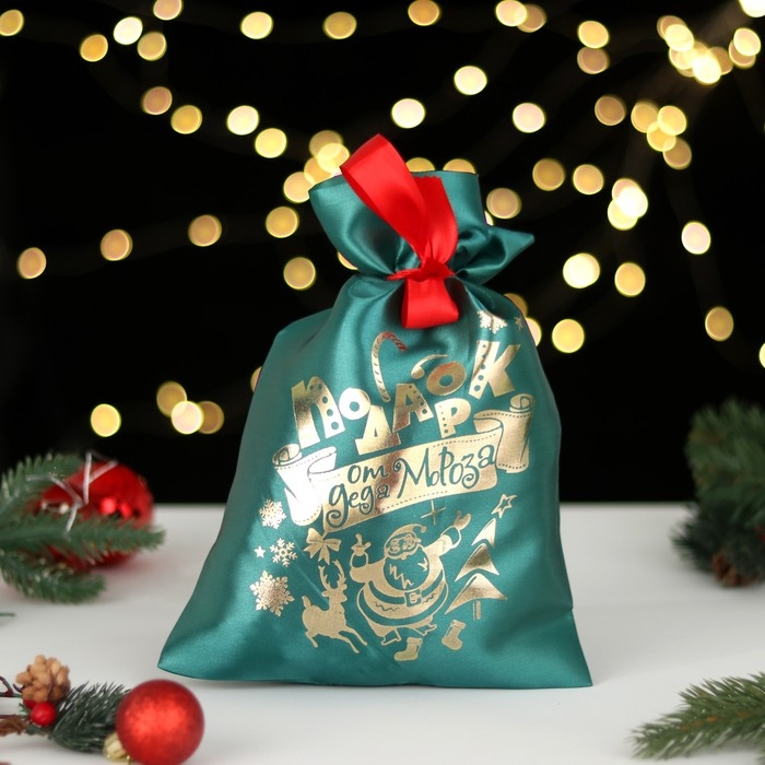 Мешок "Подарок от Деда Мороза", атлас, с завязками, зелёный, 20х30 см