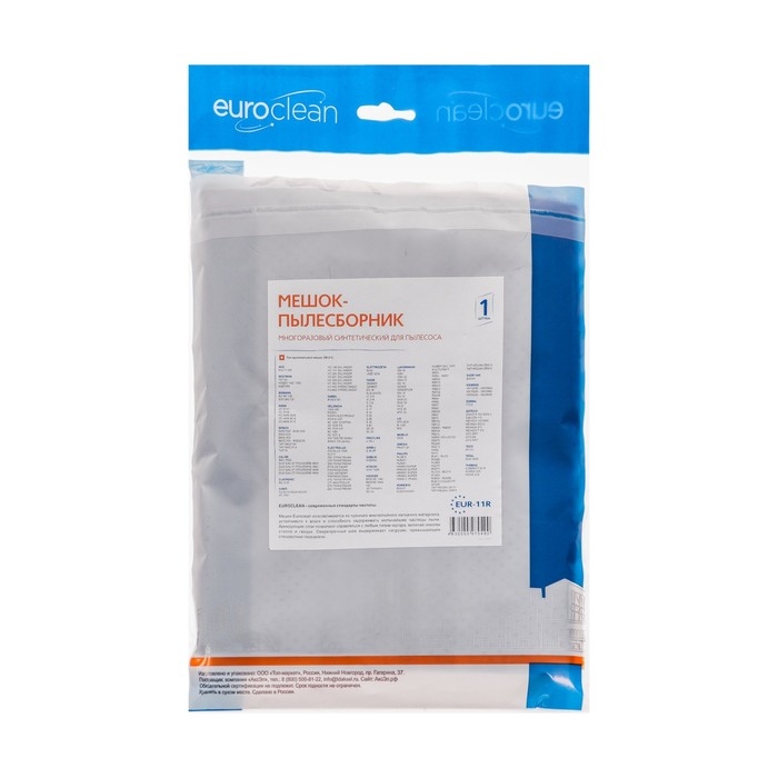 Мешок-пылесборник EUR-11R Euroclean — это многоразовое изделие, предназначенное для использования в пылесосах. Он изготовлен из прочного и долговечного материала, который обеспечивает эффективную фильтрацию воздуха от пыли и грязи.