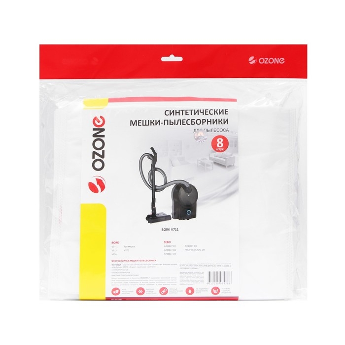 Мешок-пылесборник M-63 Ozone синтетические для пылесоса, 8 шт