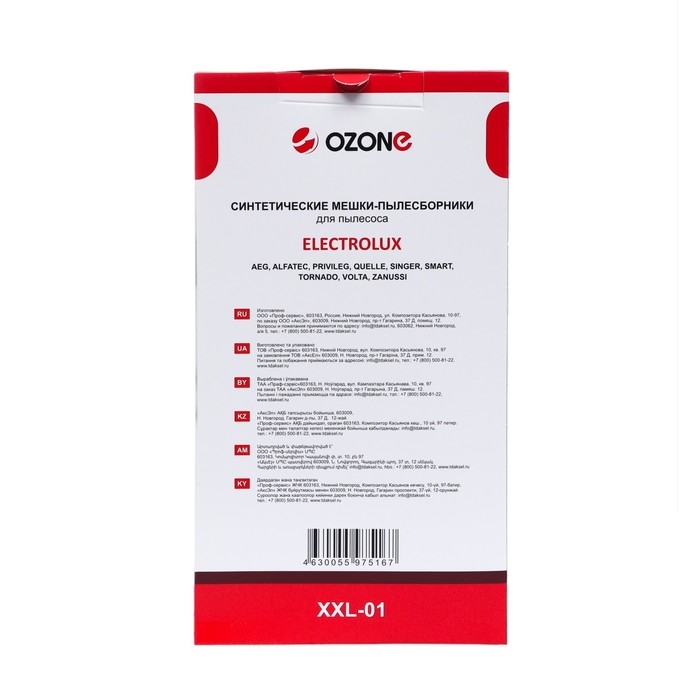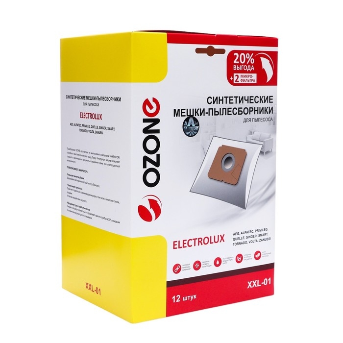 Мешок-пылесборник XXL-01 Ozone синтетические для пылесоса, 12 шт + 2 микрофильтра