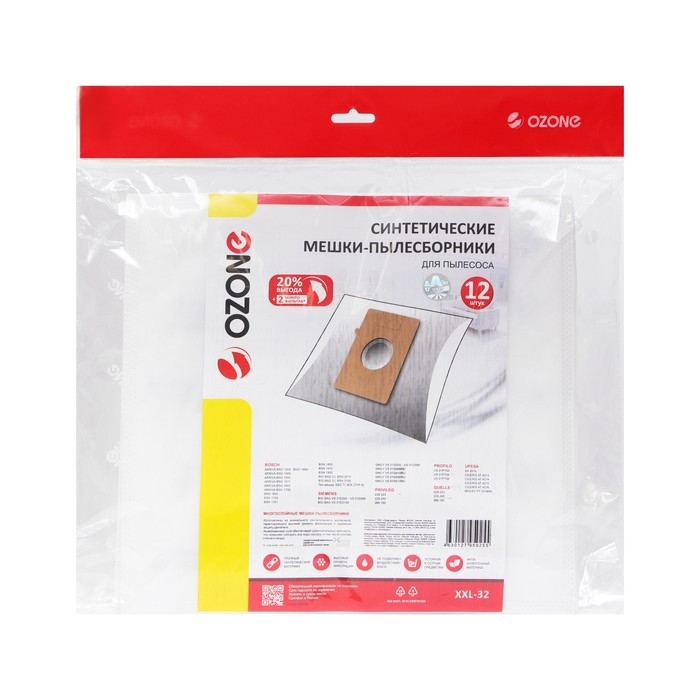 Мешок-пылесборник XXL-32 Ozone синтетические для пылесоса, 12 шт + 2 микрофильтра