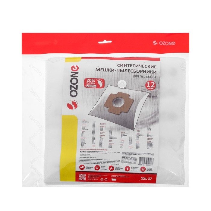 Мешок-пылесборник XXL-37 Ozone синтетические для пылесоса, 12 шт + 2 микрофильтра