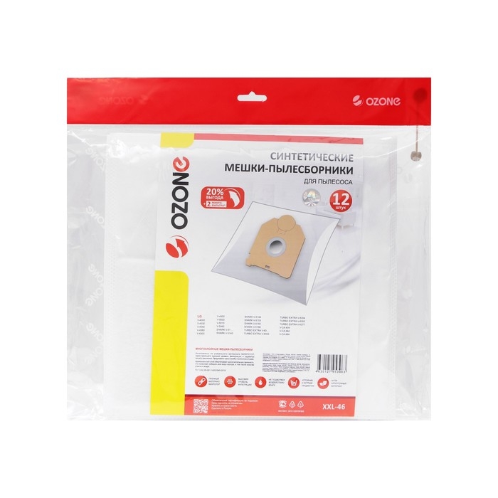 Мешок-пылесборник XXL-46 Ozone синтетические для пылесоса, 12 шт + 2 микрофильтра