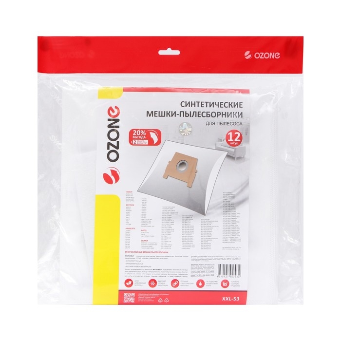 Мешок-пылесборник XXL-53 Ozone синтетические для пылесоса, 12 шт + 2 микрофильтра