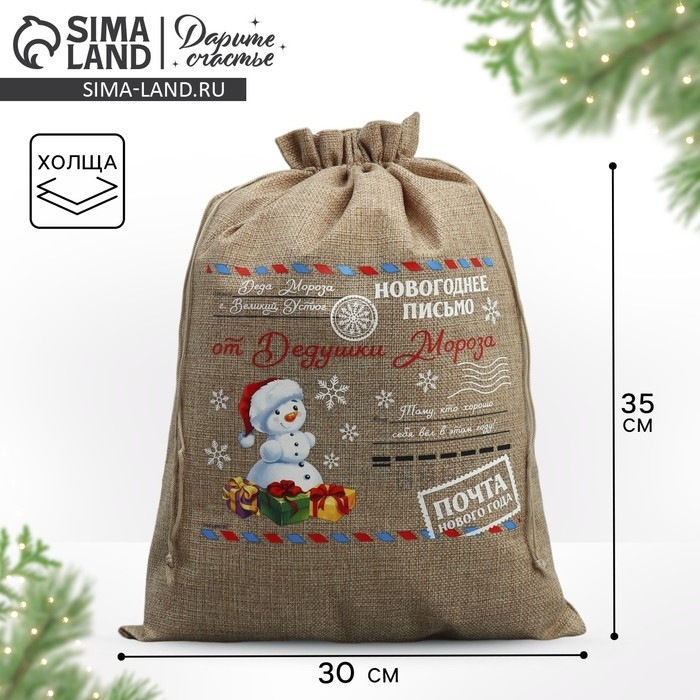 Мешок с термонаклейкой «Почта», 30 х 40 см +/- 1.5 см, Новый год