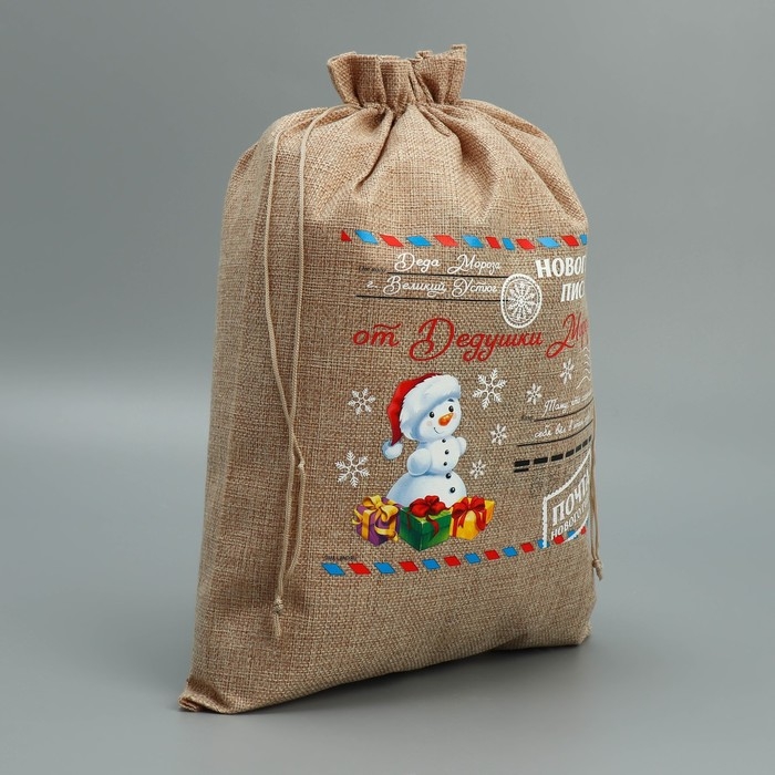Мешок для подарков «Снеговичок и снежинки», на завязках, 29 × 22 см