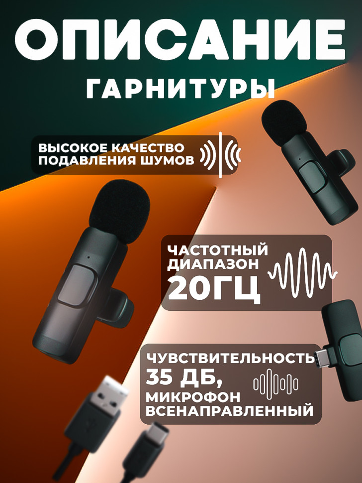 Микрофон беспроводной Type-C K9 2 in1