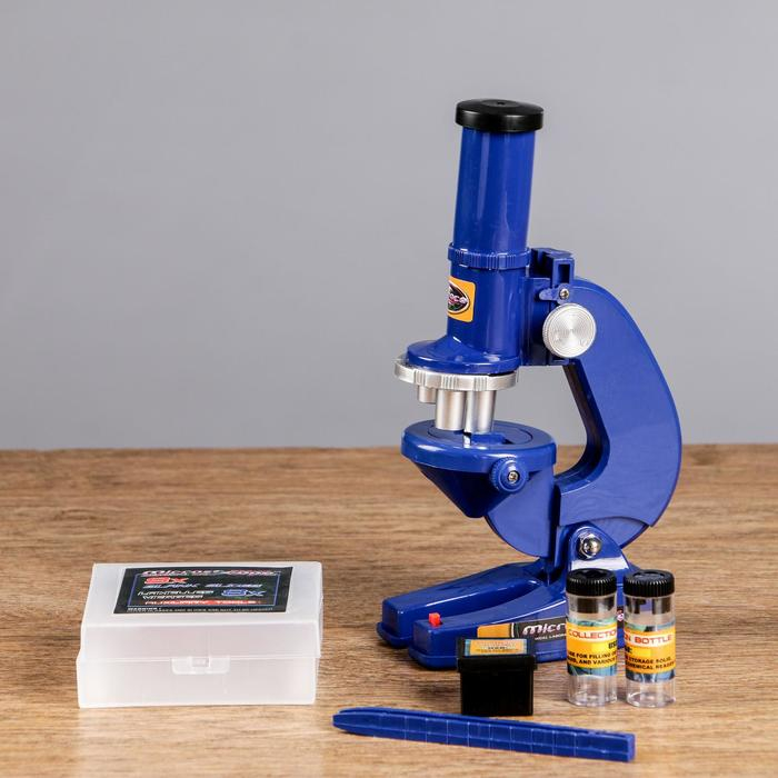 Микроскоп "Биология", кратность увеличения 450х, 200х, 100х, с подсветкой, синий