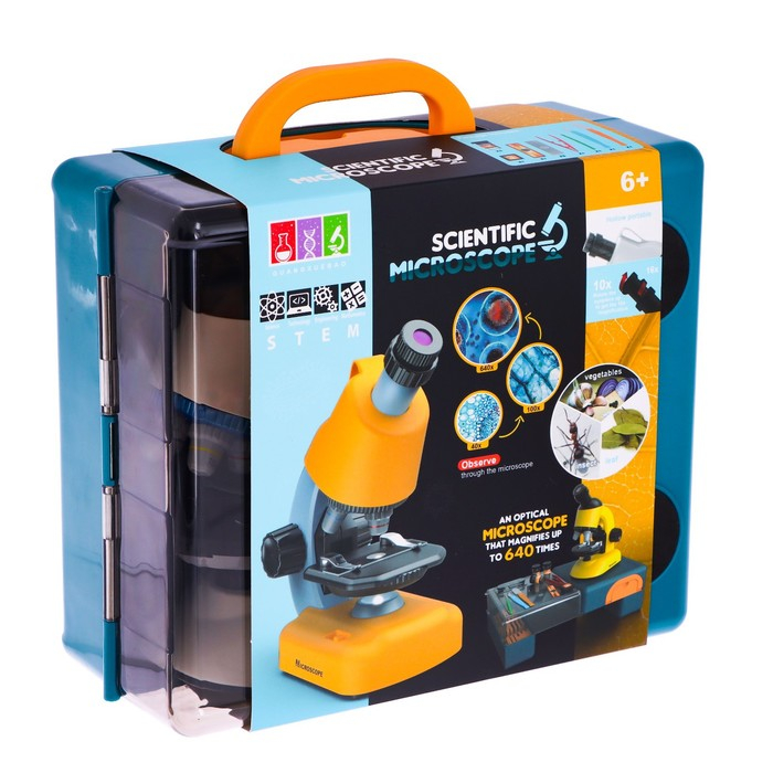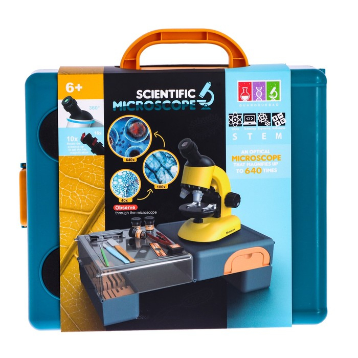 Микроскоп детский «Набор биолога в чемодане» кратность х40, х100, х640, подсветка, цвет белый