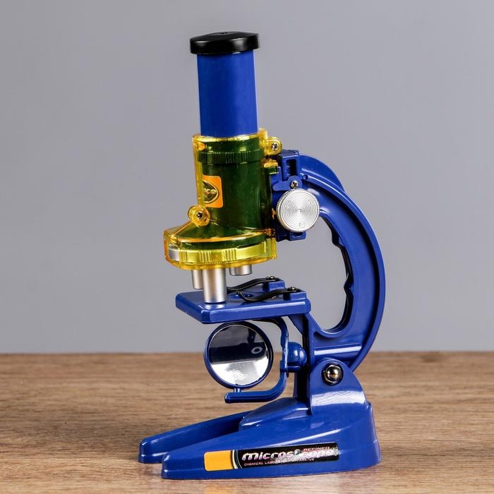 Микроскоп, кратность увеличения 450х, 200х, 100х, синий