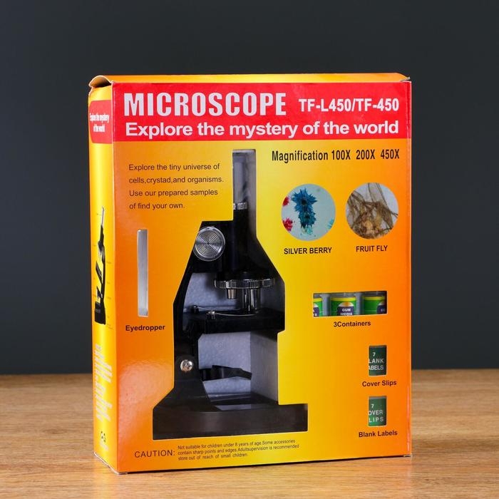 Микроскоп «Юный биолог», кратность увеличения x450, x200, x100, с подсветкой