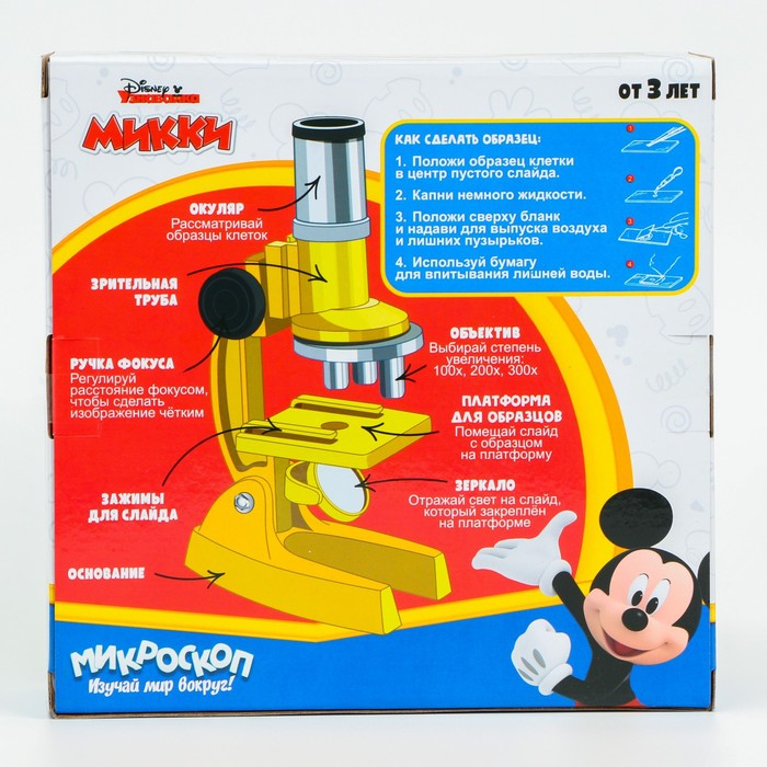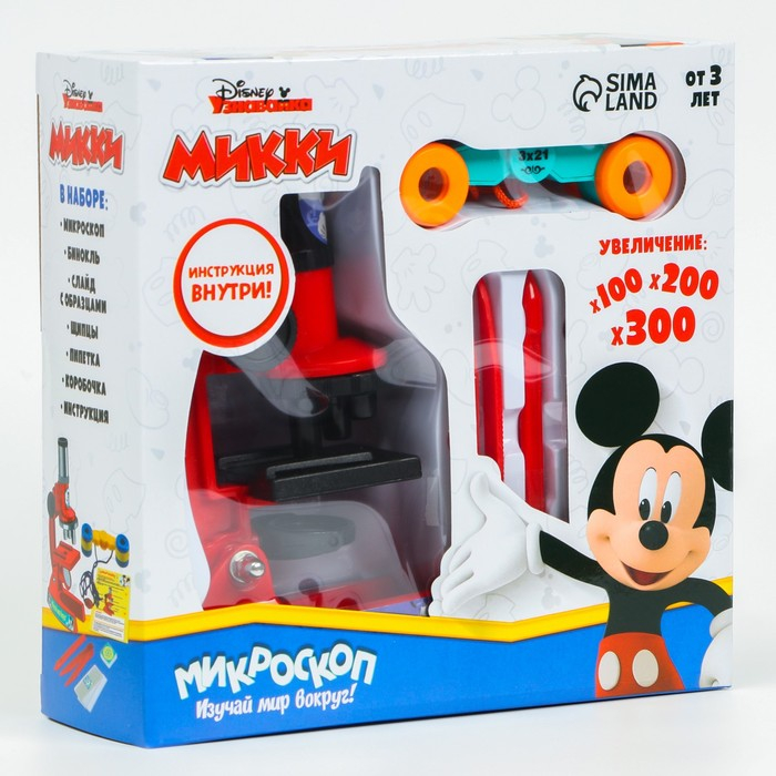 Микроскоп «Микки Маус и друзья», с биноклем и пинцетами, цвет МИКС