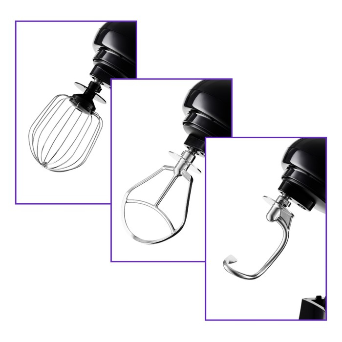 Миксер Kitfort КТ-3046-1, планетарный, 1300 Вт, 5 л, 6 скоростей, черно-фиолетовый