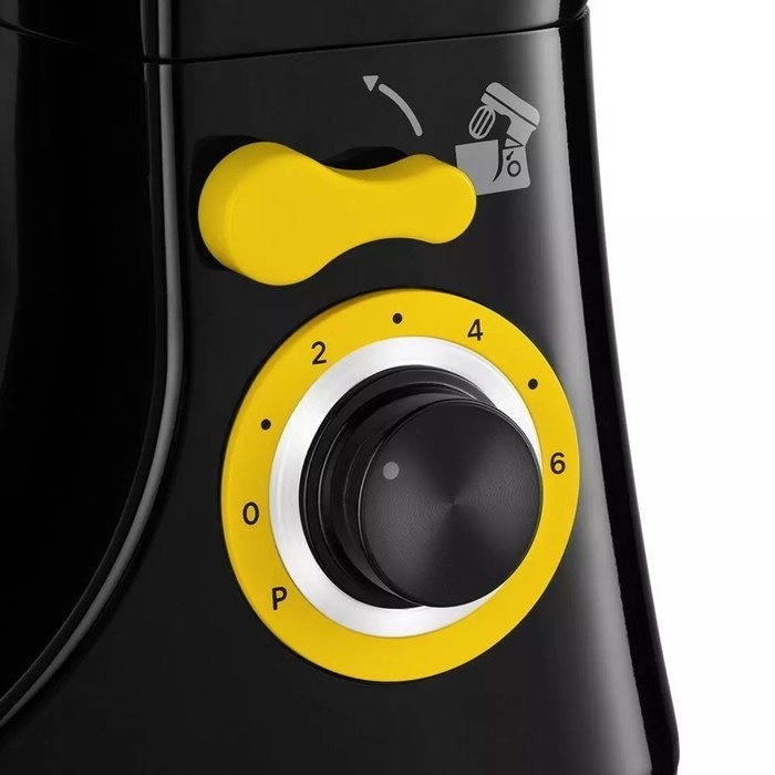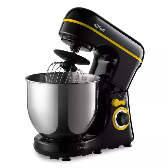 Миксер Kitfort КТ-3421, планетарный, 1400 Вт, 5.7 л, 6 скоростей, чёрно-жёлтый