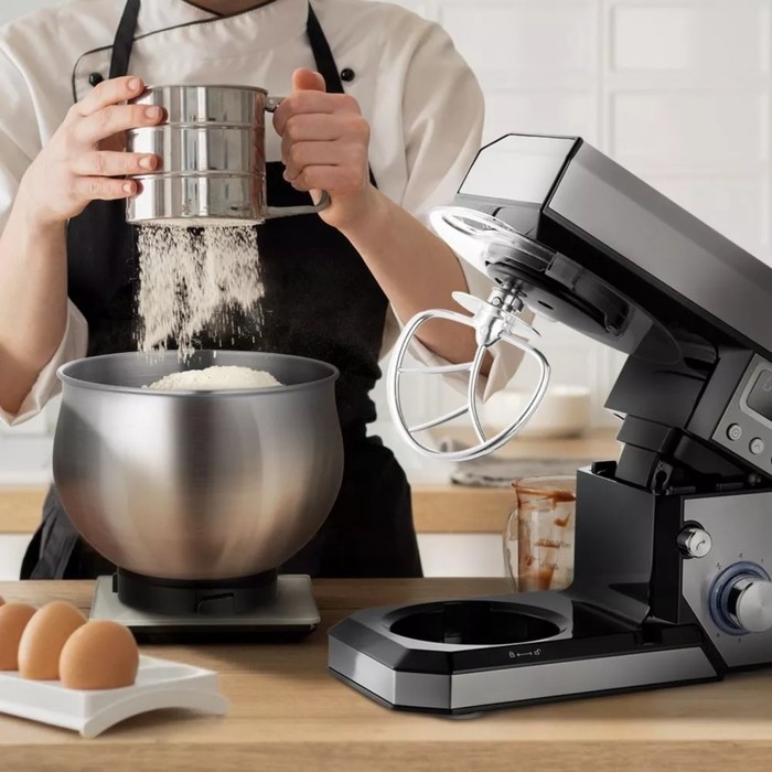 Миксер Kitfort КТ-3470, планетарный, 700 Вт, 4 л, 6 скоростей, чёрно-серебристый
