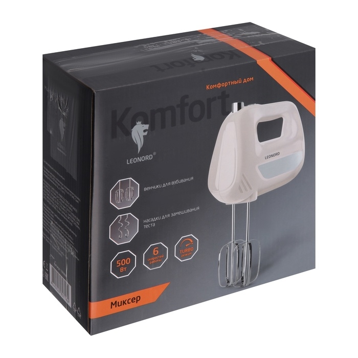 Миксер Leonord LE-1739, ручной, 500 Вт, 6 скоростей, режим "турбо", бежевый