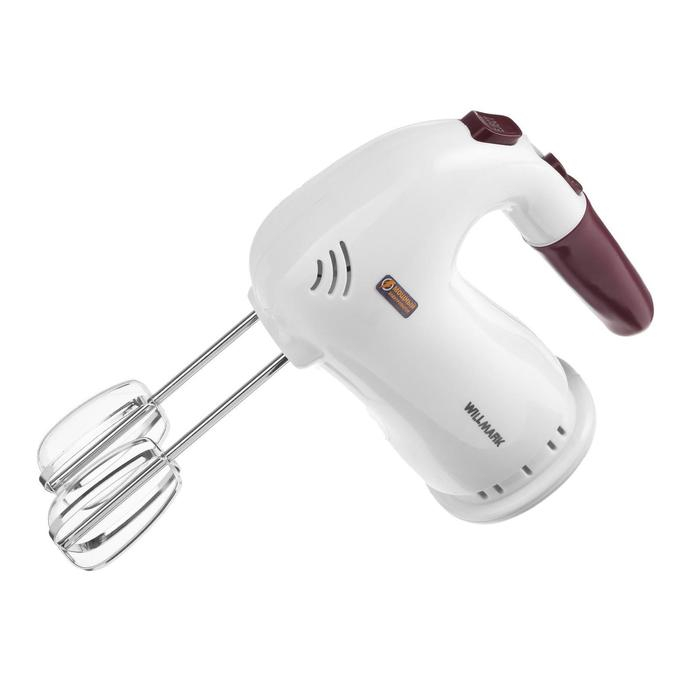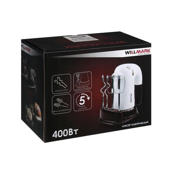 Миксер WILLMARK WHM-6023ST, ручной, 400 Вт, 5 скоростей, 2 насадки, подставка бордо