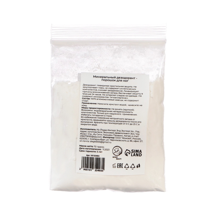 Минеральный дезодорант - порошок для ног, от неприятного запаха, 30 г