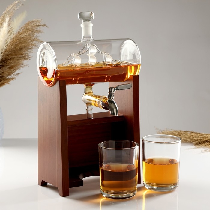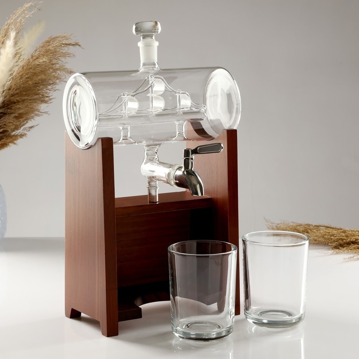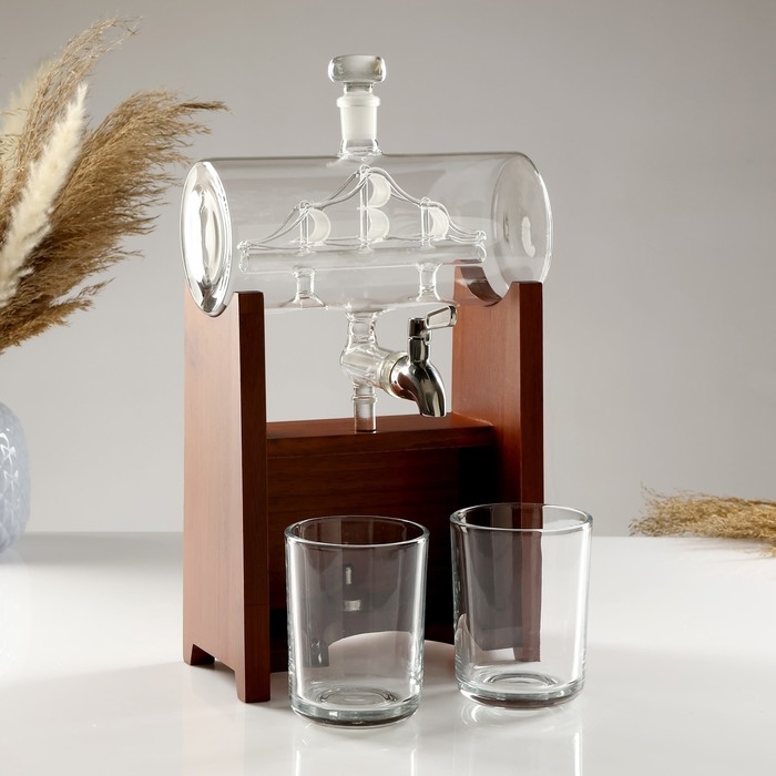 Мини-Бар Бочка, на подставке, на 2 персоны, штоф - 1300 мл, 330 мл, 10,5 х 23 х 36 см