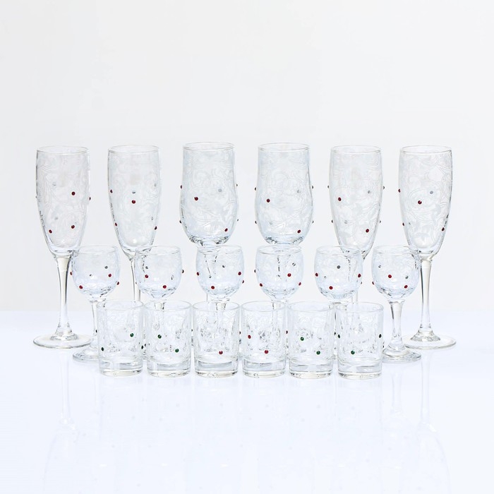 Мини-бар "Стразы" барная стойка, 6 бокалов/рюмок/стопок