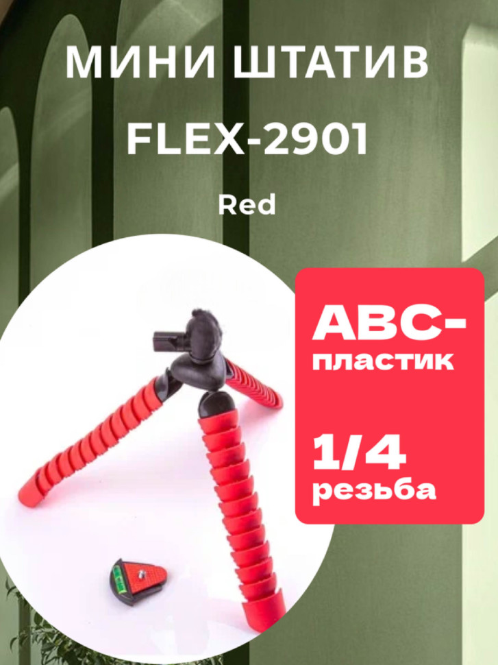 Мини-штатив FLEX-2901 ISA. Настольный мини-штатив Flex-2901 ISA - это компактное и удобное устройство для установки и использования мобильных устройств на рабочем месте. Он позволяет зафиксировать смартфон, планшет или электронную книгу под удобным углом и на необходимой высоте, обеспечивая комфортное использование. Штатив обладает следующими характеристиками: – компактный и легкий дизайн; – регулируемая высота и наклон; – универсальное крепление для различных устройств; – прочный и долговечный материал; – доступная цена. Flex-2901 ISA станет полезным аксессуаром для людей, которые часто работают с различными устройствами на своем рабочем месте и хотят обеспечить удобство их использования. Он поможет снизить нагрузку на глаза, повысить эффективность работы и улучшить комфорт при использовании мобильных устройств